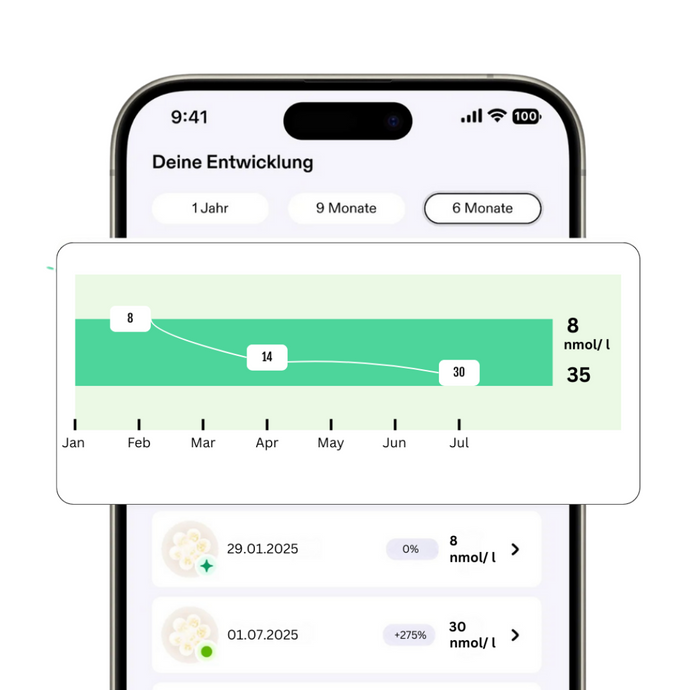 Verfolge deine Blutwerte über Zeit und sieh schwarz auf weiß, wie sich deine Gesundheit Schritt für Schritt verbessert.